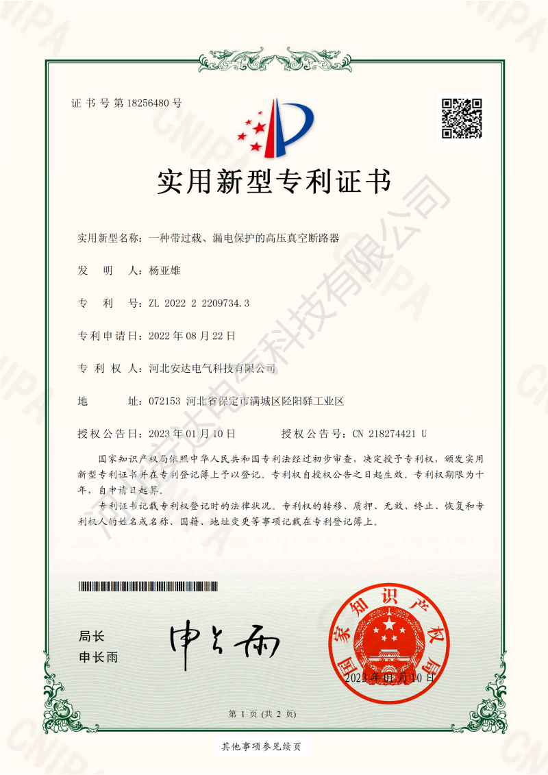 实用新型证书