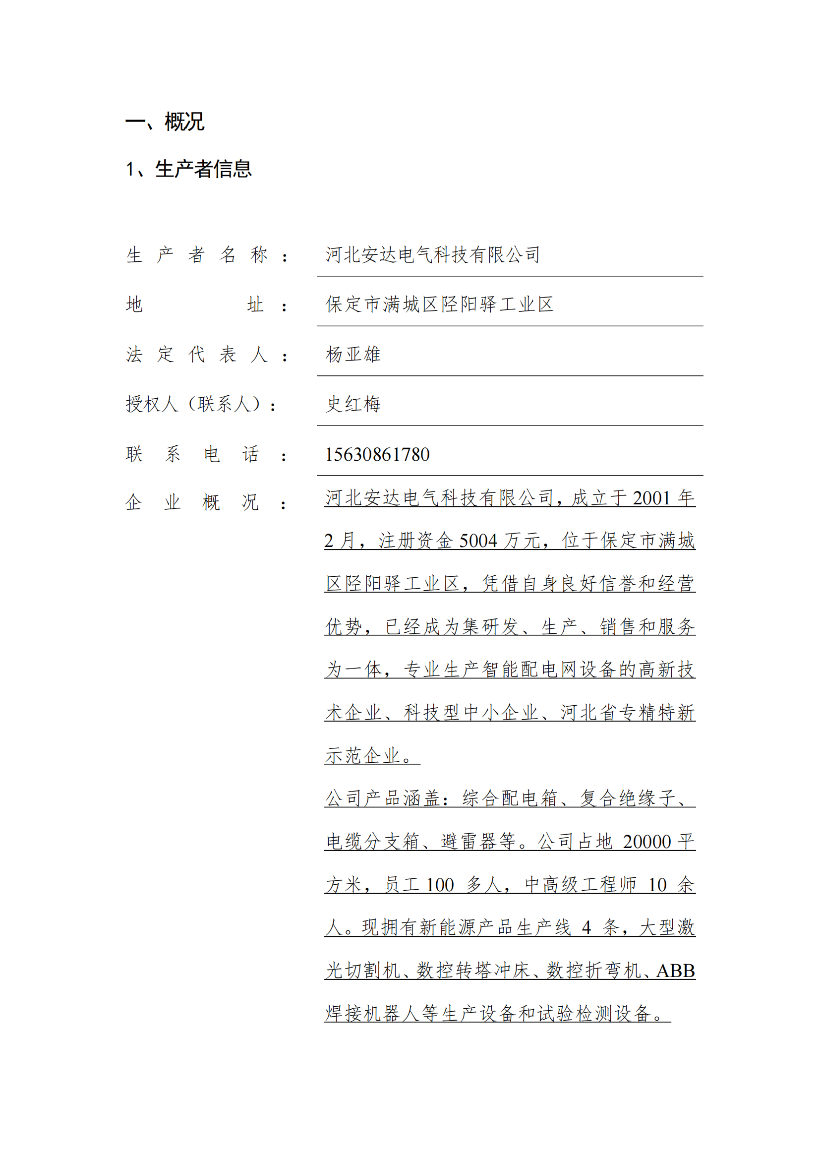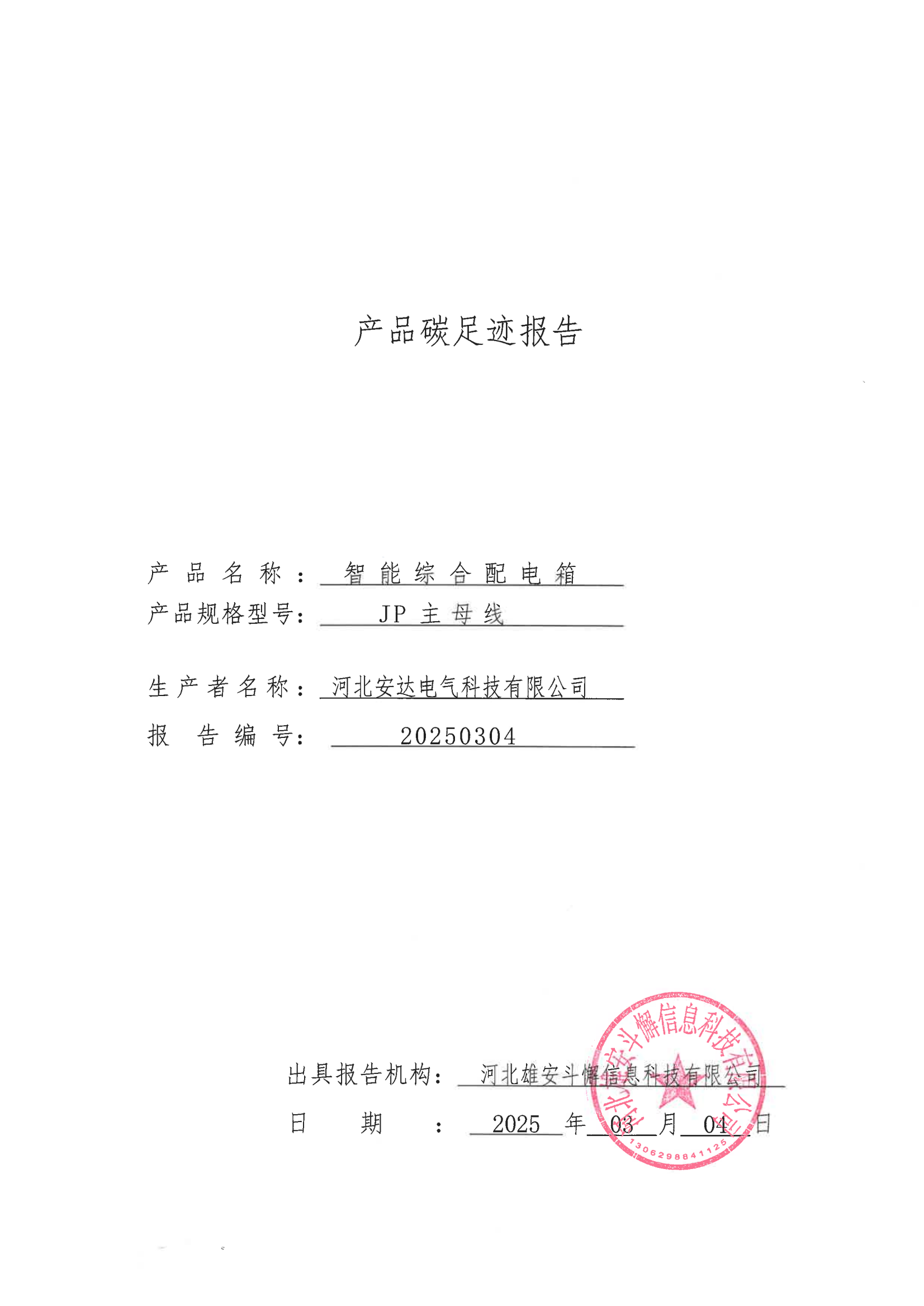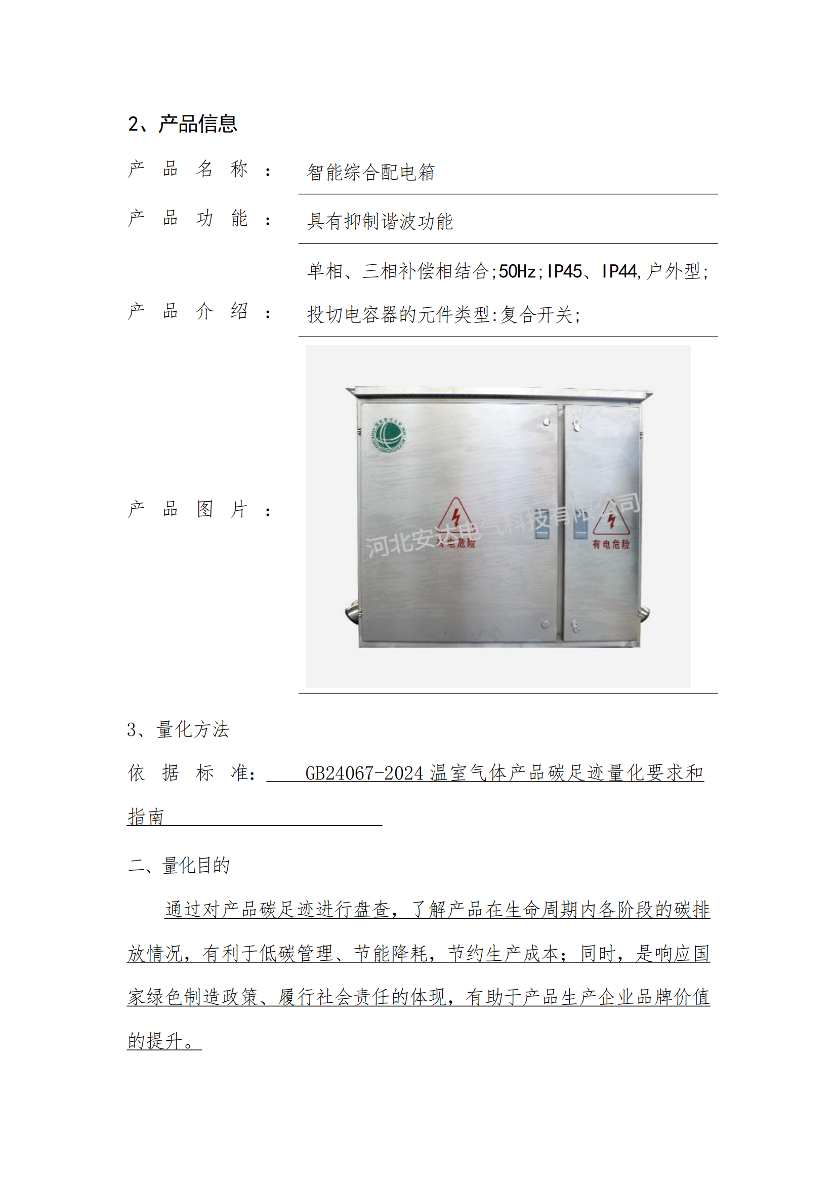 河北安达电气科技有限公司温室气体核查报告