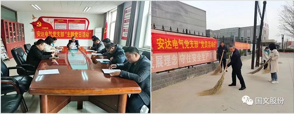 3月16日,安达电气党支部“主题党日活动”在安达电气党支部会议室举行。活动中,安达电气党支部书记杨国安书记带领大家一同学习了《凝聚起强国建设民族复兴的磅礴力量—2023年全国两会巡礼》并做出了学习发言;各党员及积极分子们也积极表达了关于该文章的感受。会后,安达电气党支部组织党员在安达门口对光储充荷一体化站进行了清扫。